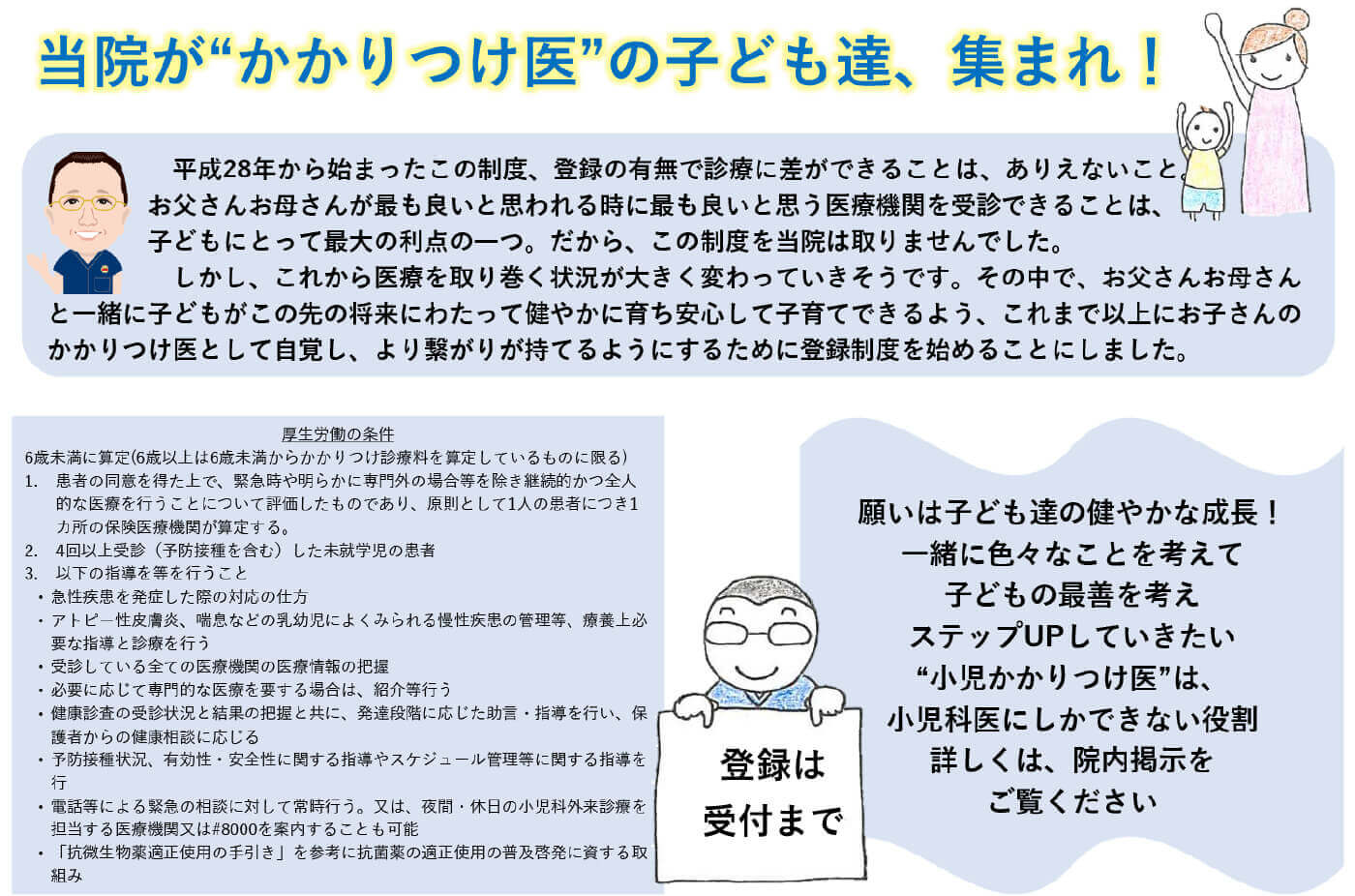 それっぽく解説してあるものもありますが、 私たちが考える“かかりつけ医”とは、かかりつけ医の子どもたちが、今のまますくすく 大きくなるために、小児科でできることは何でもやる! パパママ、一緒に子育てパートナーになろうね! という思いです。